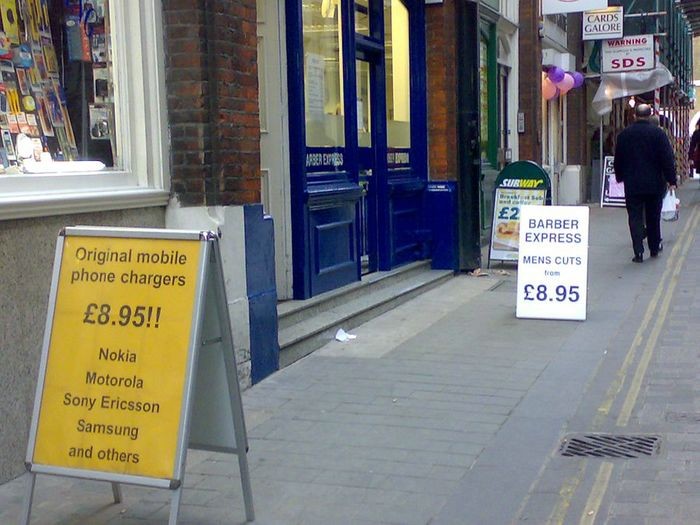 It's exactly the same price to buy a mobile/cell charger or to cut your hair in London.