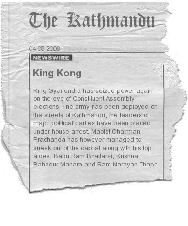 You know what happens day after tomorrow in nepal? Terrorist Moibadi loses, and Prachada denies the result. Many people get killed. Prachanda and Baburam go underground. People gets fed up with the violence. Nepali congress, UML and King will have a meeting. Nepal army finds a rat hole where Prachanda and Baburam hiding. They kill them. Then Nepali Congress and UML make and joint government, Gyanendra becomes ceremonial king again (hope this stupid won't loses the title again). Then we see a New Democratic Nepal. Am I dreaming??????????? pinch me guys !!!!!!!!!!!!!!!!!!