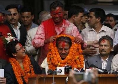 Baburam did not get garland that time because his victory was not announced that time.