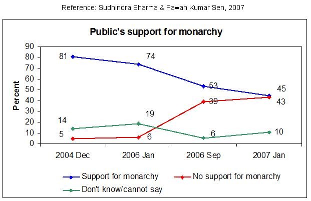 Nepal was popular throughout (74% just before Jana-andolan II, to give