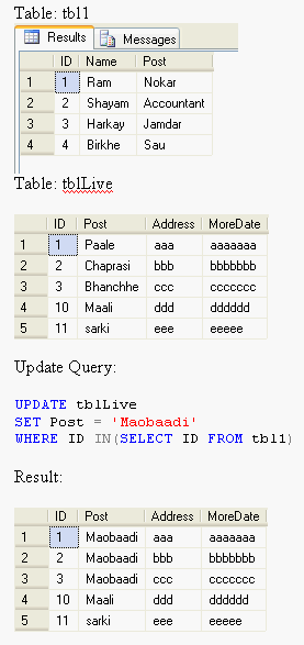 - UPDATE
