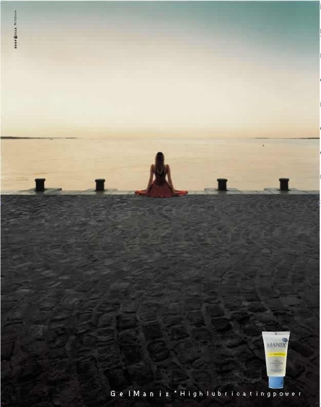 look at the picture carefully ............. try to figure out WHAT THE LADY MUST BE SITTING ON, its the add for lubricant.