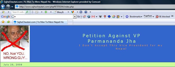 NOTE: The opinions here represent the opinions of the individual posters, and not of Sajha.com. It is not possible for sajha.com to monitor all the postings, since sajha.com merely seeks to provide a cyber location for discussing ideas and concerns related to Nepal and the Nepalis. Please send an email to [email protected] using a valid email address if you want any posting to be considered for deletion. Your request will be handled on a one to one basis. Sajha.com is a service please don't abuse it. - Thanks.