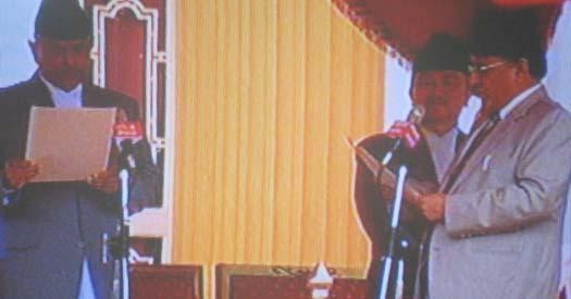 President Dr Ram Baran Yadav administered him oath of office and secrecy. He took oath "in the name the people".