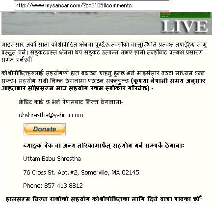 Mysansar is controlled from Boston. The administrator of mysansar is uttambabushrestha, who writes for maoists and lives in boston.