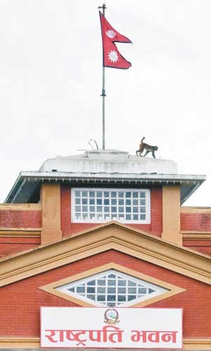 look at that lucky monkey. At the top of presidential palace.