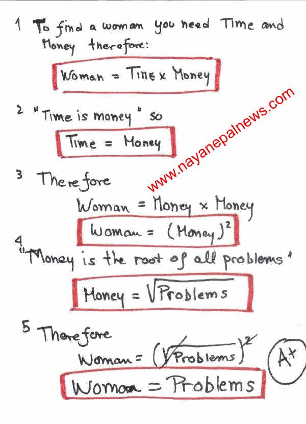 nepalnews - ur equation is damee.... kasto answer ho eey ama....... question ta daroo lagyoo answer pani daroo nai lagyoo ......