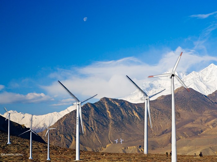 Jomsom Nepal. Nepali private investors spent 9 millions of dollar to built Jomsom Wind Power Terminal. One of the largest projects of Nepal will be ready for use from April 2009. The first section of the project with 112 wind terminal is ready for from April and the remaining two third will be completed by the end of December this year. Total capacity of 554 MW electricity will be produced from wind power, enough for almost half of the total energy demand in Nepal. With the help of Nepal Development Bank and Asian Development Bank two more such projects are on the way. Nepalnews.com