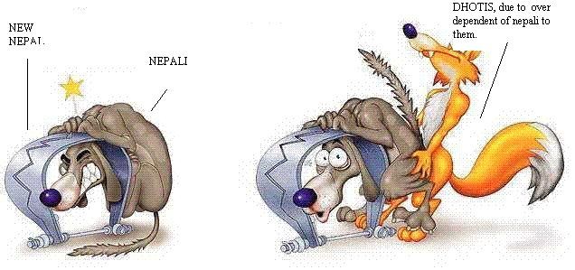 I do not agree. I see art, not who they are performing. If the music compose can touch my feeling, I say Hell YA dhoti music. I watch hockey where Indian team plays. I am not a big fan of Hindi movies, but I watch sometimes.Well I saw Prashant Tamang perform in Indian Idol too. Nepali music and show are great. I enjoy everything shown on Nepali Television channels except nepali movies. It may be due to degraded quality of Nepali movie. I tried to love Nepali movie but couldn't help myself. Everytime, immature acting, sambhujit baskota singing, I hate it man, really.... I have seen the behaviors of dhotis a lot in my life. I do not like them but they have got to do nothing with their movies, music and games. My Message: LOVE ART
