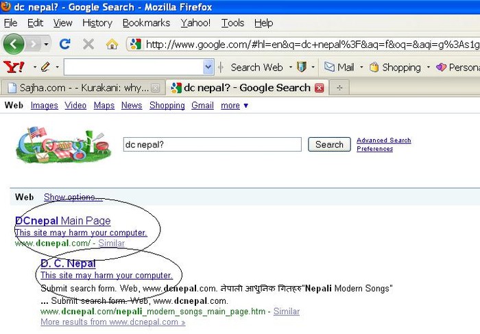 haha you have to be naive to believe that google is wrong. Google sends it's robots everyday to websites and when it sees malicious code it shows the warning. Lot of nepali website owners don't know the basics of security when it comes to their site being injected with malicious codes by hackers.