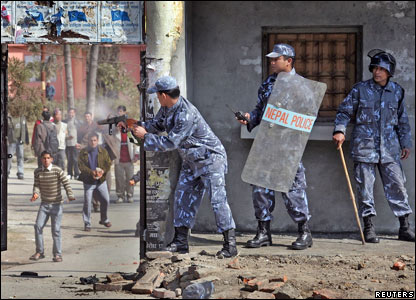 ok i know what nepal government's position is ....but that doesn't give anyone the right to beat the prostestors indiscriminately....there are more humane ways i guess......just felt bad seeing the picture how the police was beating tibetan protestors... thats what the police did during JANA-AANDOLAN 2 right ???? and the politicians were saying whoever beats protestors those will have to be guilty after restoration of democracy...........things do not become right just because you are now in government.........i really dont like it when unarmed people are beaten like that...............i hope i get to see some change .......