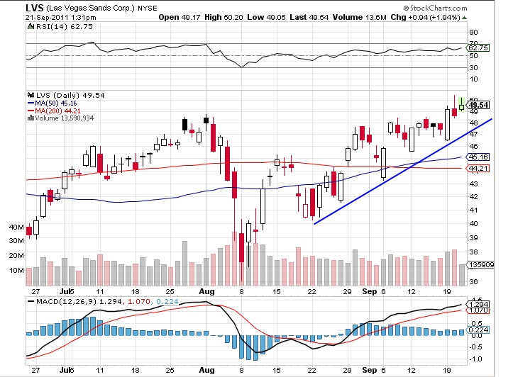 I am no techie either, probably tyranny has better idea.  Having said that, in regards to LVS, volume is so so and I could not say one way or the other when looking at MACD or Stoch.  I would look at the fundamentals in this case.
