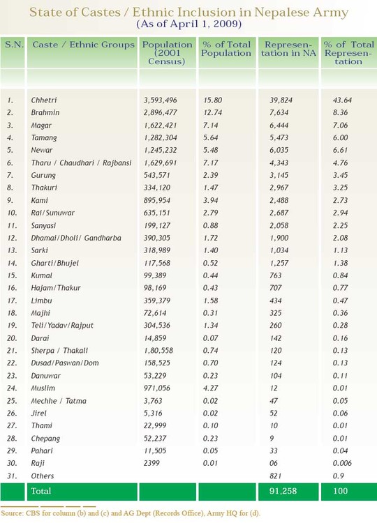 त्यो भन्न खोज्या के भने हेर्नुस न नालापानी जी ले पोस्ट गर्नु भएको टेबल मा, अब तराई का सिंह छन् नि ( जस्तै राम राजा प्रसाद सिंह) तिनी हरु पनि नेपाली सेना मा छन तर त्यो surname त्यो टेबल मा छैन, तिनी हरु कि त अन्य समूह मा राखिएका छन कि त छेत्री समूह मा, तेस्तै “झा” छन् नि तराई कै ब्राम्हण हरु, तिनी हरु पनि छन् नेपाली सेना मा, अब तिनी हरु लाई त्यो टेबलमा कि त अन्य मा राखेको हुनु पर्छ कि त ब्राम्हण मा, त्यो के मा राखेको छ अब नेपाली सेना ले भन्ने कुरा.