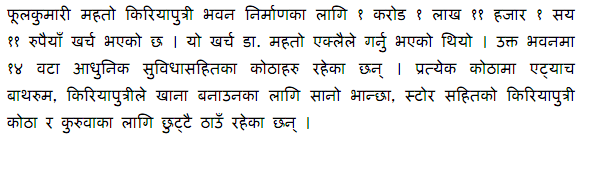 J. F keneddy said " ask not what country can give to you but what you can give to the country". Unfortunately what NRNA has done is only asking . Even in recent conference Nepal government invested 30 lakhs on them. If you count all the NRNA conferences in last ten years the investment on NRNA by nepal government would be in crores. What have they got in return. More demands for citizenship , money for conferences, pay less tax than foreigners. If they want to make nepal rich why they don't want to pay tax.