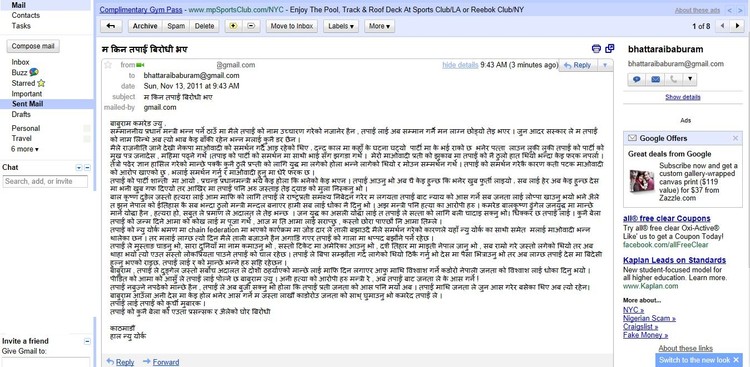 Mathi ko photo maile Baburam lai email gareko screen shot ho .