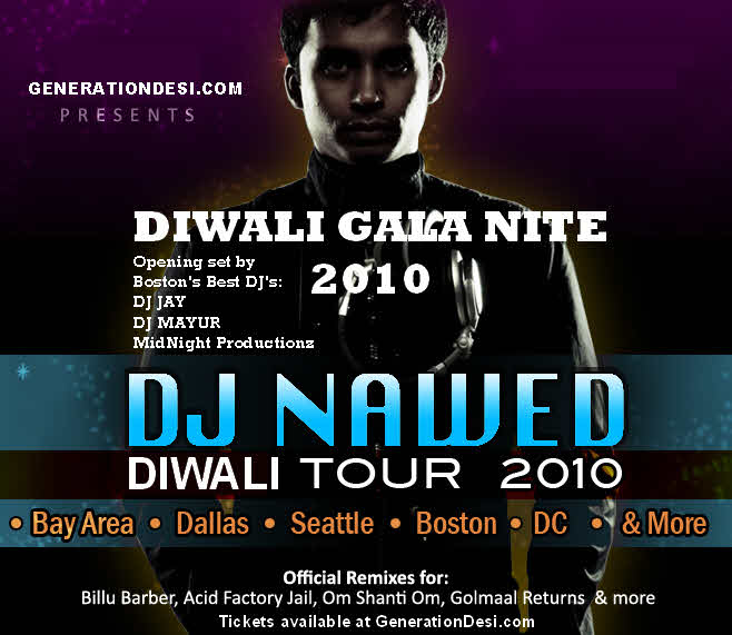 GenerationDesi.com is back again bringing you one of Boston's hottest Bollywood/Bhangra party this Diwali! You don't want to miss the Diwali Gala Party 2010 - A night with India's #1 DJ Nawed! From the people who bought you Glitz & Glamor 2009, 2010, Michi Boat Party 2008, 2009, 2010 and brought you DJ Akbar Sami in 2008! Over 300+ people expected! One of our Biggest Desi Party of the years!!