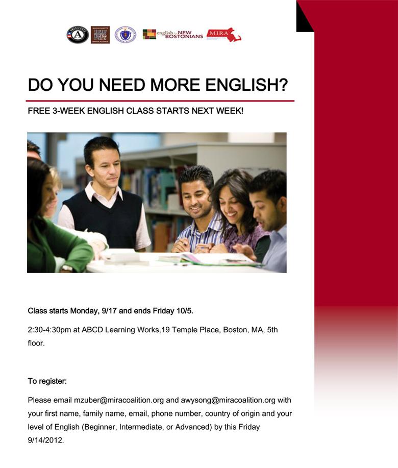 Learning Program - Free 3 week english class, Boston