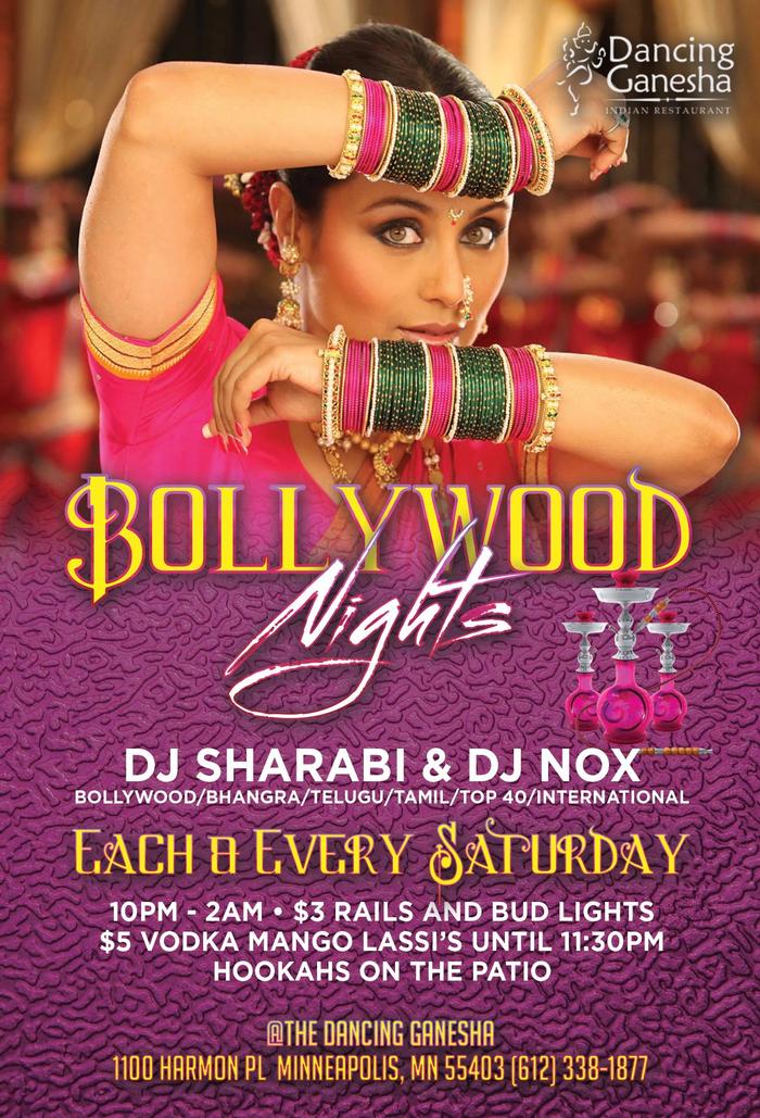 Bollywood Nights Tonight !!!!!!!!!!!! ------------------December 6th at Dancing Ganesha ****Ladies in free till 11:30 with RSVP**** with "Deejay Nox" & "DJ Sharabi" spinning the best in Bollywood, Nepali, Bhangra, top 40 & Hip Hop along with "Video DJ" $3 RAILS, $ 3 LIGHTS $5 MANGO LASSI'S and Bollywood Beach's UNTIL 11:30 10-2 18+