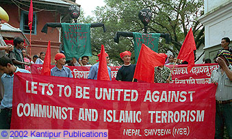 A rally taken out by Shiva Sena Nepal at the capital's Bhadrakali on Thursday protesting against Maoist atrocities and continued violence. (Online Photo: NC)
