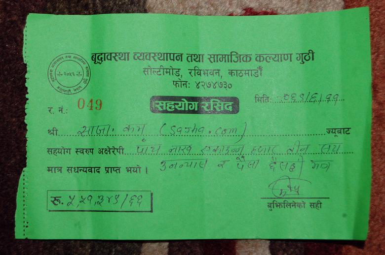 Network's operator San Pradhan sent the amount to his father (Madan Mohan Pradhan)'s bank account at the Siddhartha Bank. The senior Pradhan visited the Ama Ghar based at Rabhi Bhawan in the capital today and handed over the cheque to Shrestha.