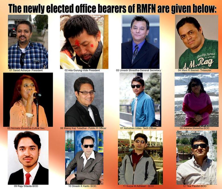 यसरी निर्वाचित हुनेहरुमा एक्ज्युकेटिभसको प्रेसिडेन्टमा शरद आचार्य, भाईस प्रेसिडेन्टमा आइत गुरुङ, सेक्रेटरीमा उमेश श्रेष्ठ, ट्रेजररमा मणिराज बस्नेत, कल्चरल सेक्रेटरीमा निर्मला श्रेष्ठ, पब्लिक रिलेसन अफिसरमा मनोजकाजी तुलाधर तथा टेकनिकल अफिसरमा अभिशेस उदास छन् । यसै गरी बोर्ड अफ डिरेक्टरर्समा अर्पणा श्रेष्ठ, राजु सिटौला, दिनेशकुमार कार्की, टिकाराज पौडेल तथा सूर्यमणि अधिकारी छन् । नवनिर्वाचित एक्ज्युकेटिभस तथा बोर्ड अफ डाइरेक्टरर्सको सदस्यहरूले १७ अप्रिल २०१३ बाट आफ्नो पदभार ग्रहण गर्नेछन ।