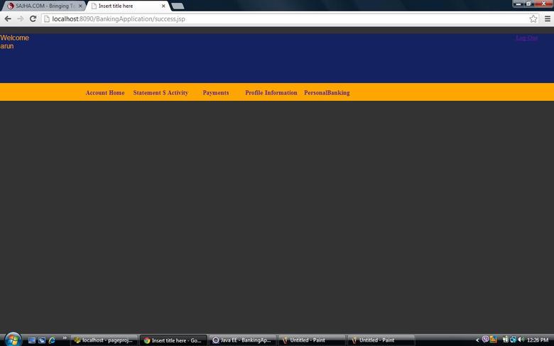 First off thanks for ur reply, Yes i am using my SQL server and i am just using simple JSP servlet. I have created all pojo class that requires, aslo have DAO layer and service layer as well. The screen shot  that i have shared with all after varified user is login into the account(home page).  My Questions: