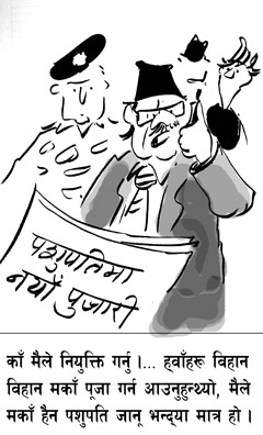 Good Job Bhandaris. If Nepalis can be priest in Hindu Temples in India and other temples made by Indians, who cares who is priest in hindu temple in Nepal as long as the priest is a hindu. Yes, the money / donation should be monitored, and deposited to improve the quality of services in and around the temple. Maoists should have focused on this aspect alone. Maoists talk about corruption, but should not they release the income (looted money / hafta from biz houses ) and expenditure if not since 1996, it should at least show since 2006 after they signed 12 pt treaty. Maoists are the most corrupt entity in current Nepal. As Kunda said in a TV inerview what is happening in Nepal is all in different name of Maoist Bhatri Sangathan are part of Maoist actions, it does not matter which org is involved, we should consider them all as Maoist actions. Period.