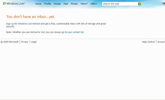 When I tried signing in my hotmail a/c, it says "You don't have an Inbox yet". Did anyone see this message? It was working fine until this afternoon. I tried with my other hotmail a/c too. It has the same result.