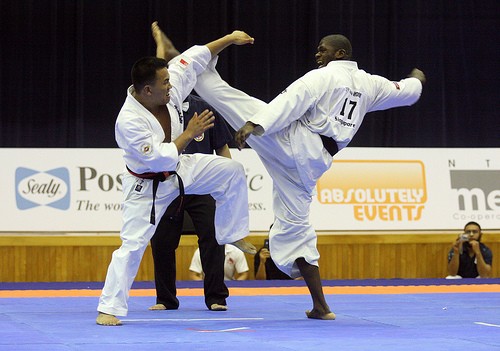 Verdict was that Singapore came in top and also bagged the third spot. This was Singapore’s best showing in both regional and international full contact (kyokushin) karate competition. Below: Singapore’s Barja Kumar Rai, 26, in action against Hong Kong’s James Kouame, 30, to clinch the first place. Just look at the size and height of James Kouame. Though he was much bigger in size, Barja overcame his opponent. Like I_Nepali said "Fighting is not all about size and strength- it takes more than that."