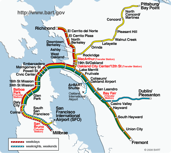 • The only limitations of the BART are that it doesn't go very far south. Millbrae is the last stop and you'd have to take buses there on.
