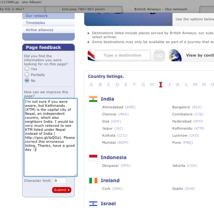 Sorry! I forgot to mention that it was on British Airways website. I was looking for a ticket to KTM and came across it.
